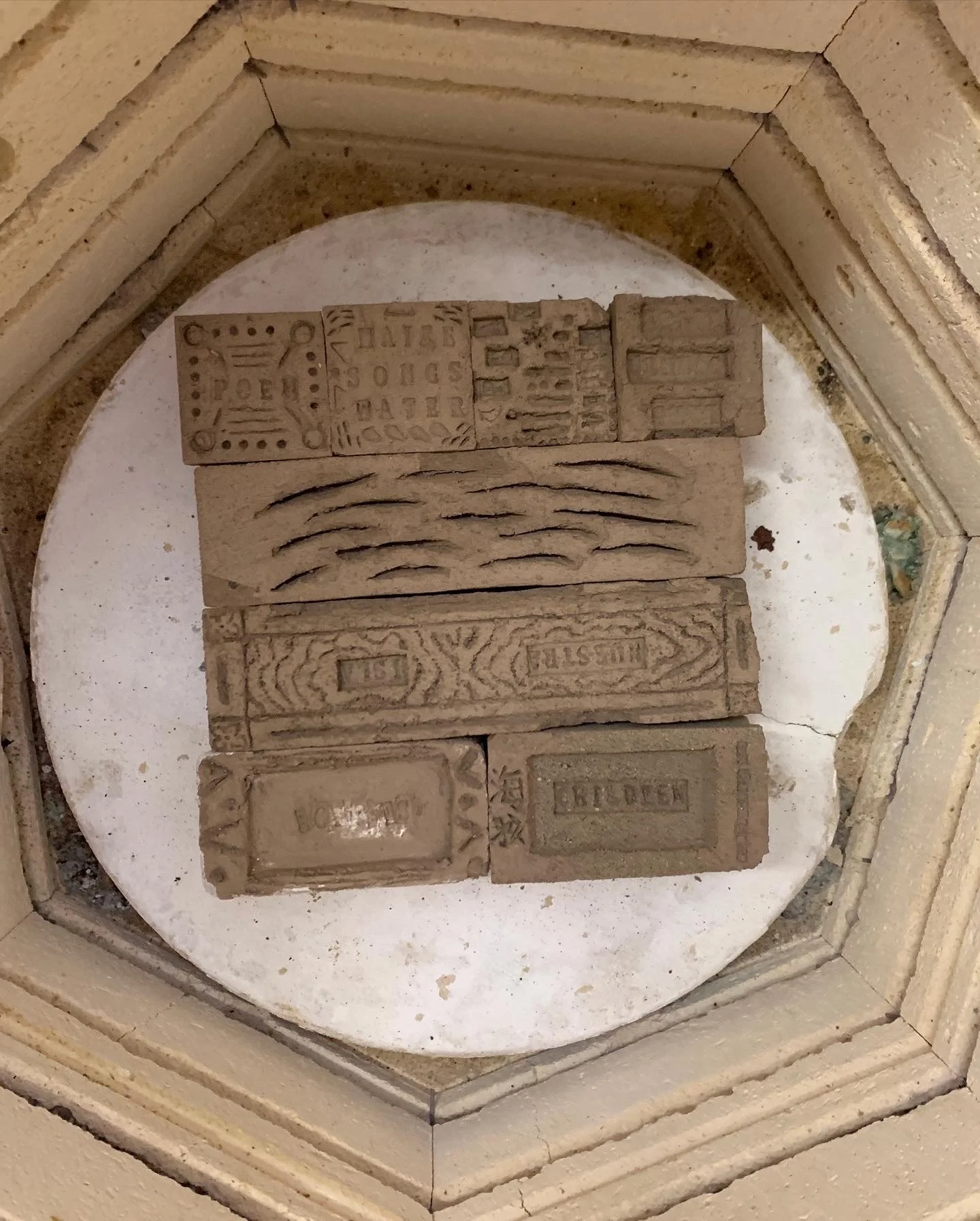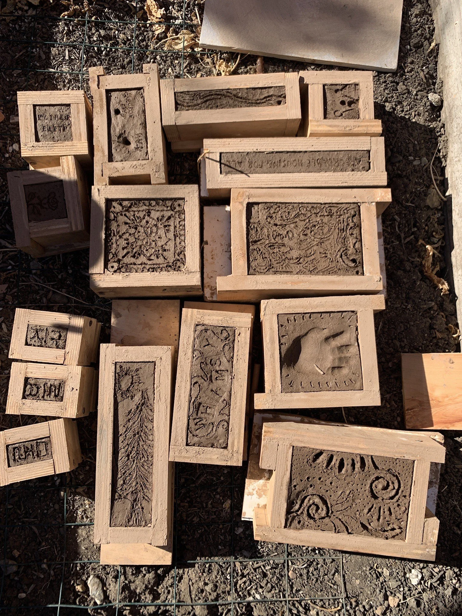 "Embedded Bricks" is a project inspired by land, labor, and lineage. Working around themes of ritual, protection and care, each brick is made of clay harvested from the artist’s backyard in 2020. The community is invited to inscribe their intentions into a handmade brick. Participants are asked to respond to the question – What is it that you want protected?