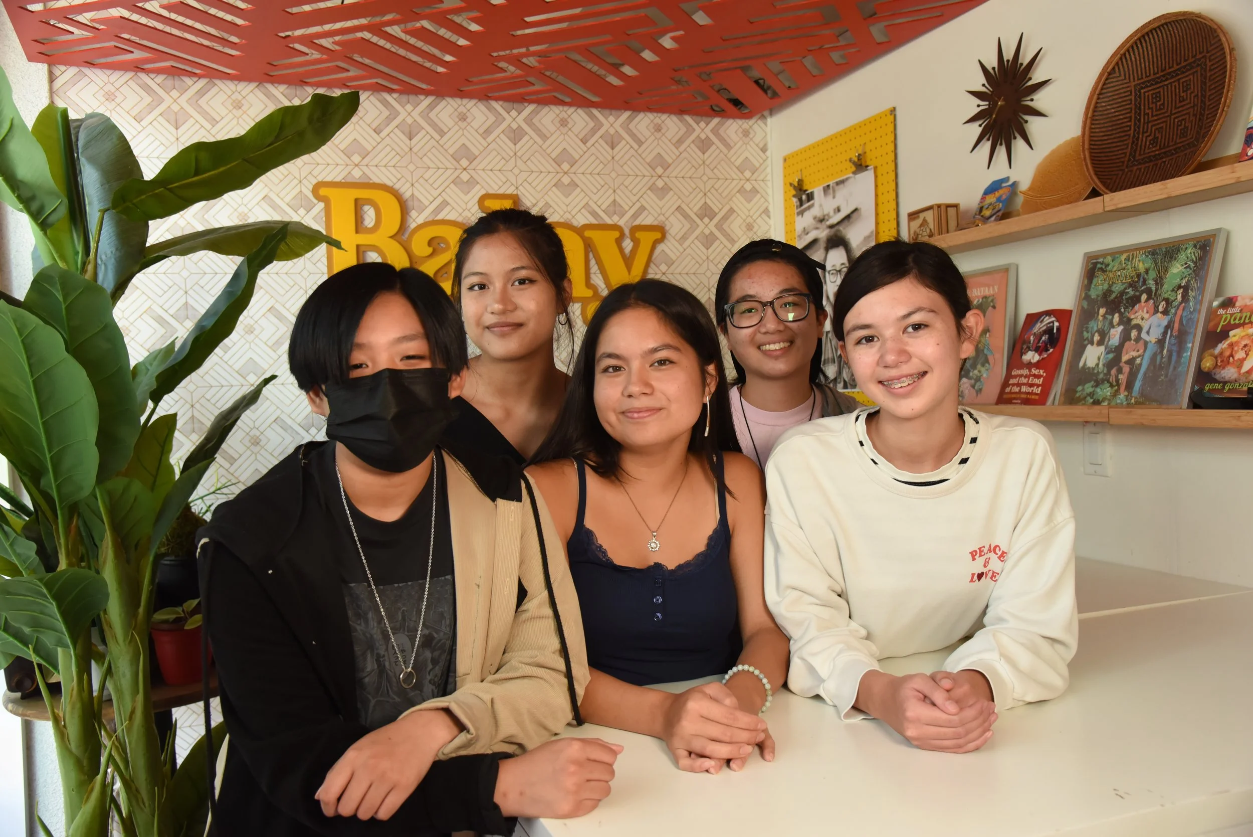 Pictured above, Haven Cheng, Danalyn Silva, Soluna Ibarra-Tacdol, J Ting, and Amelia Naughten celebrate the completion of the program inside of the Balay Kreative streaming hub.