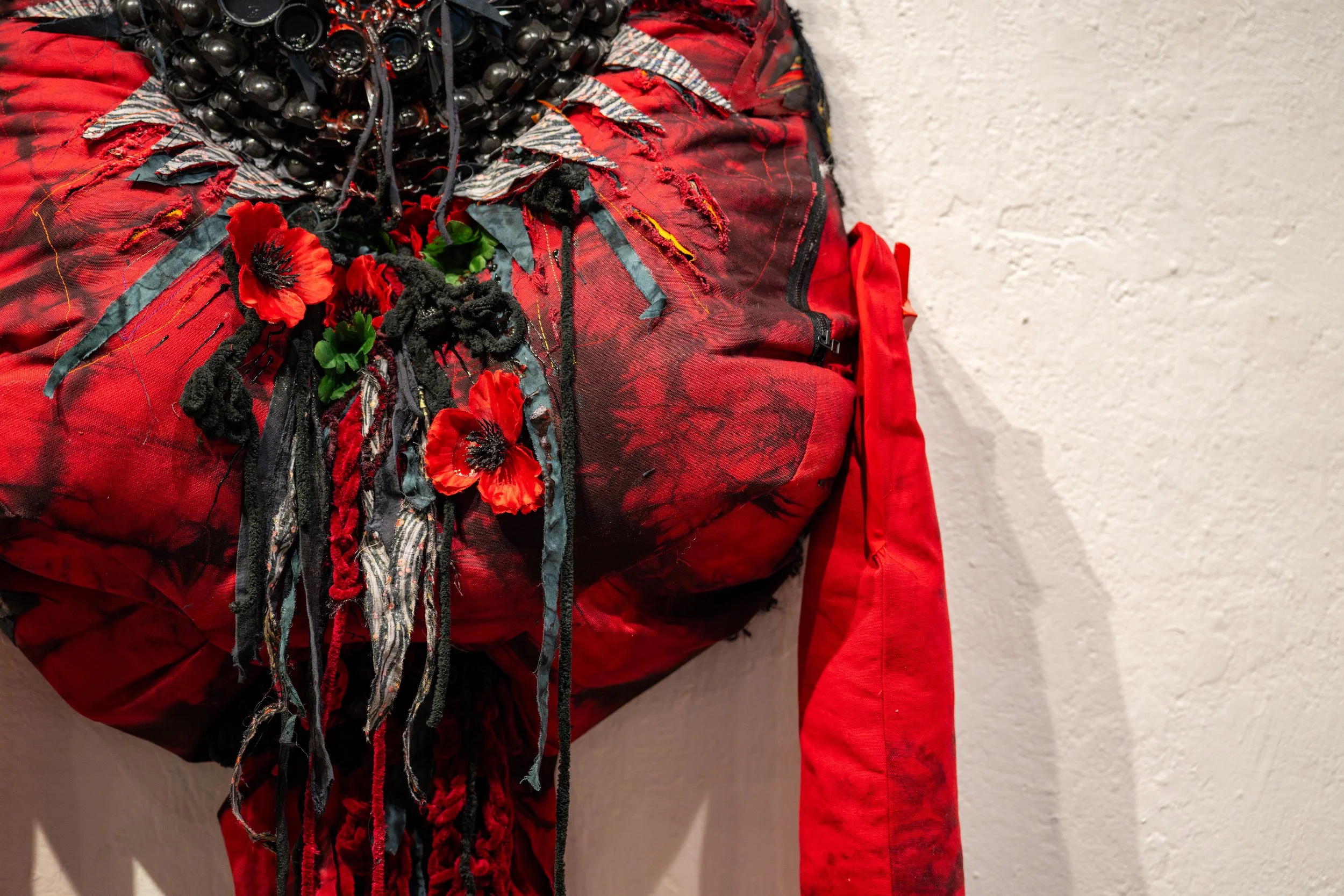 Mother Oceania is a mixed-media sculpture made from coastal textiles, plastic waste, and microplastics gathered from the Alameda shoreline. Her body is a container both for the waste the oceans are made to carry and the collective grief our planet endures in the shadow of industrial capitalism.